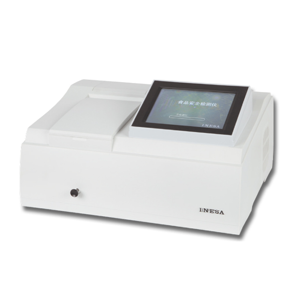 ,酶催化神經(jīng)傳導(dǎo)代謝產(chǎn)物(乙酰膽堿)水解,其水解產(chǎn)物與顯色劑反應(yīng),產(chǎn)生黃色物質(zhì),用分光光度計測定412nm下吸光度隨時間的變化值,計算出抑制率,通過抑制率可以判斷出樣品中是否含有有機(jī)磷或氨基甲酸酯類農(nóng)藥的殘留。可以實(shí)現(xiàn)有機(jī)磷及氨基甲酸酯類農(nóng)藥殘留量的現(xiàn)場快速檢測。